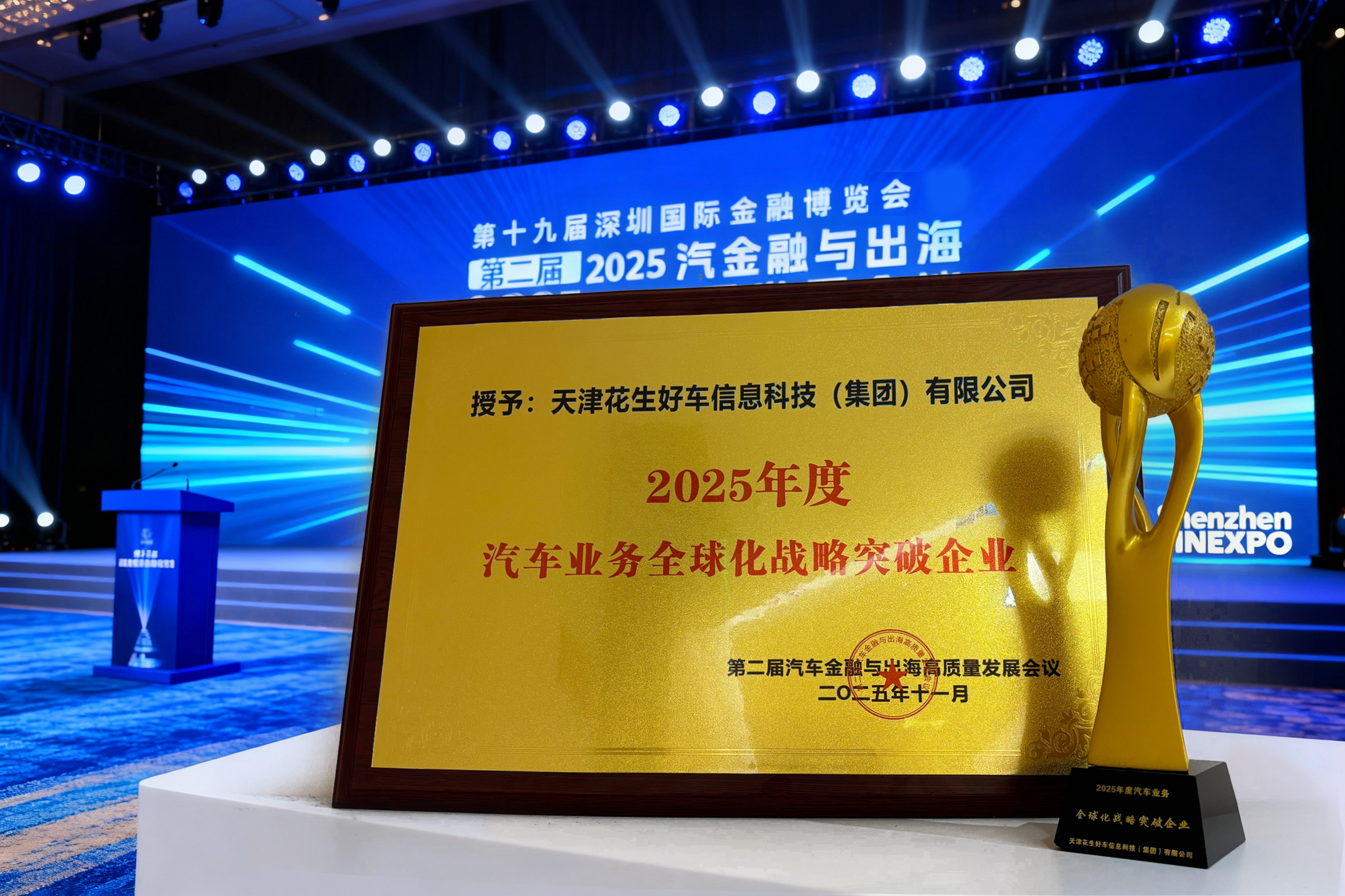 近日,在深圳举办的2025第二届汽车金融与出海高质量发展会议上,花生好车从百余家参评企业中脱颖而出,荣膺本年度唯一的“汽车业务全球化战略突破企业奖”。